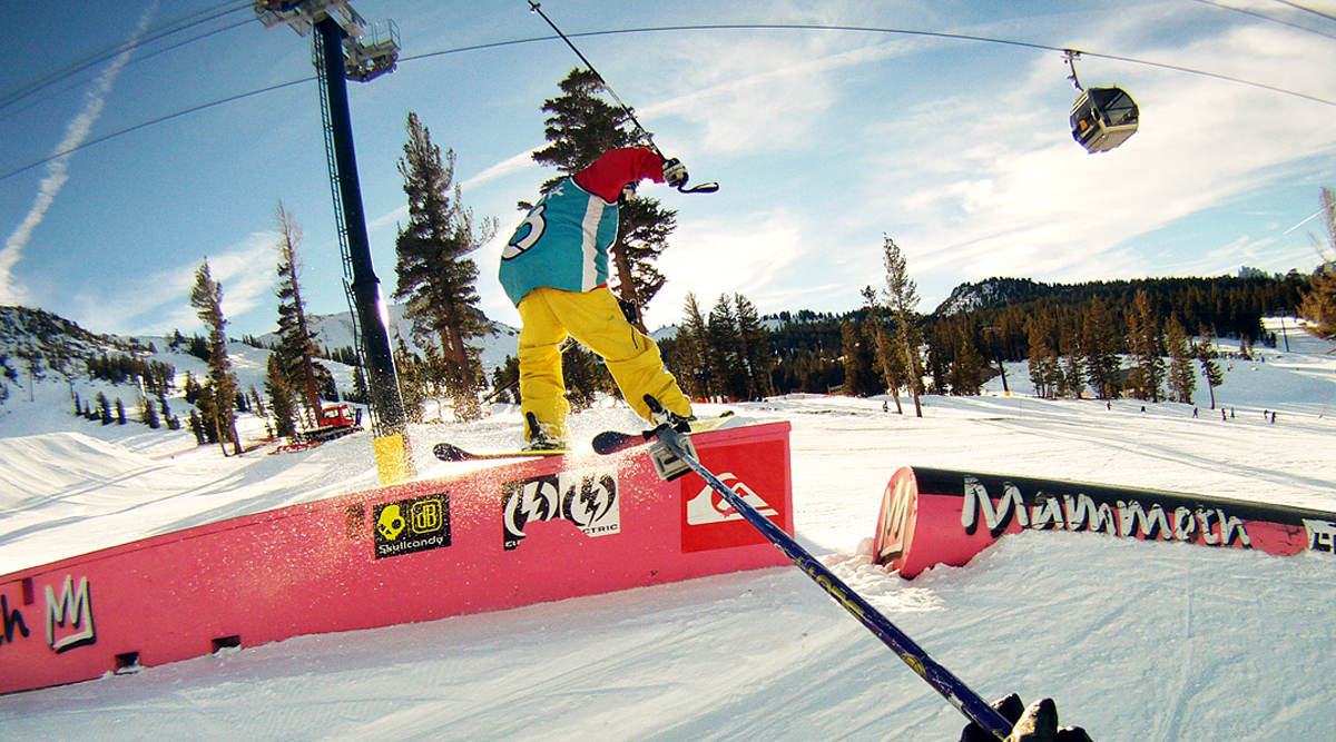 Een andere manier om tijdens het skiën je moment vast te leggen is door middel van een GoPro pole mount. Deze bevestiging kan eenvoudig vast worden gemaakt aan een skistok. Door middel van een handomdraai kan je gemakkelijk de camera 360 graden draaien. De camera zal niet gemakkelijk wegglijden, want door de rubberen voering blijft deze op zijn plek. Met behulp van de bevestigingsgreep is de pole mount ook weer eenvoudig los te maken.